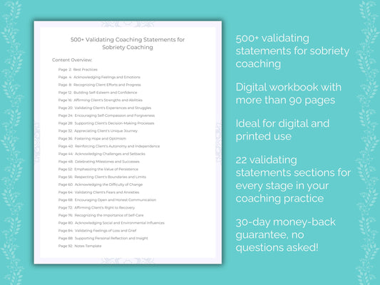 500+ Sobriety Validating Coaching Statements | PDF Workbook
