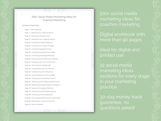 500+ Coaches Social Media Marketing Ideas | PDF Workbook