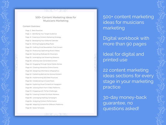 500+ Musicians Content Marketing Ideas | PDF Workbook