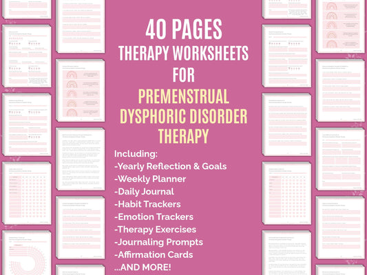 Premenstrual Dysphoric Disorder Therapy Worksheets Bundle | 40 Pages PDF Workbook