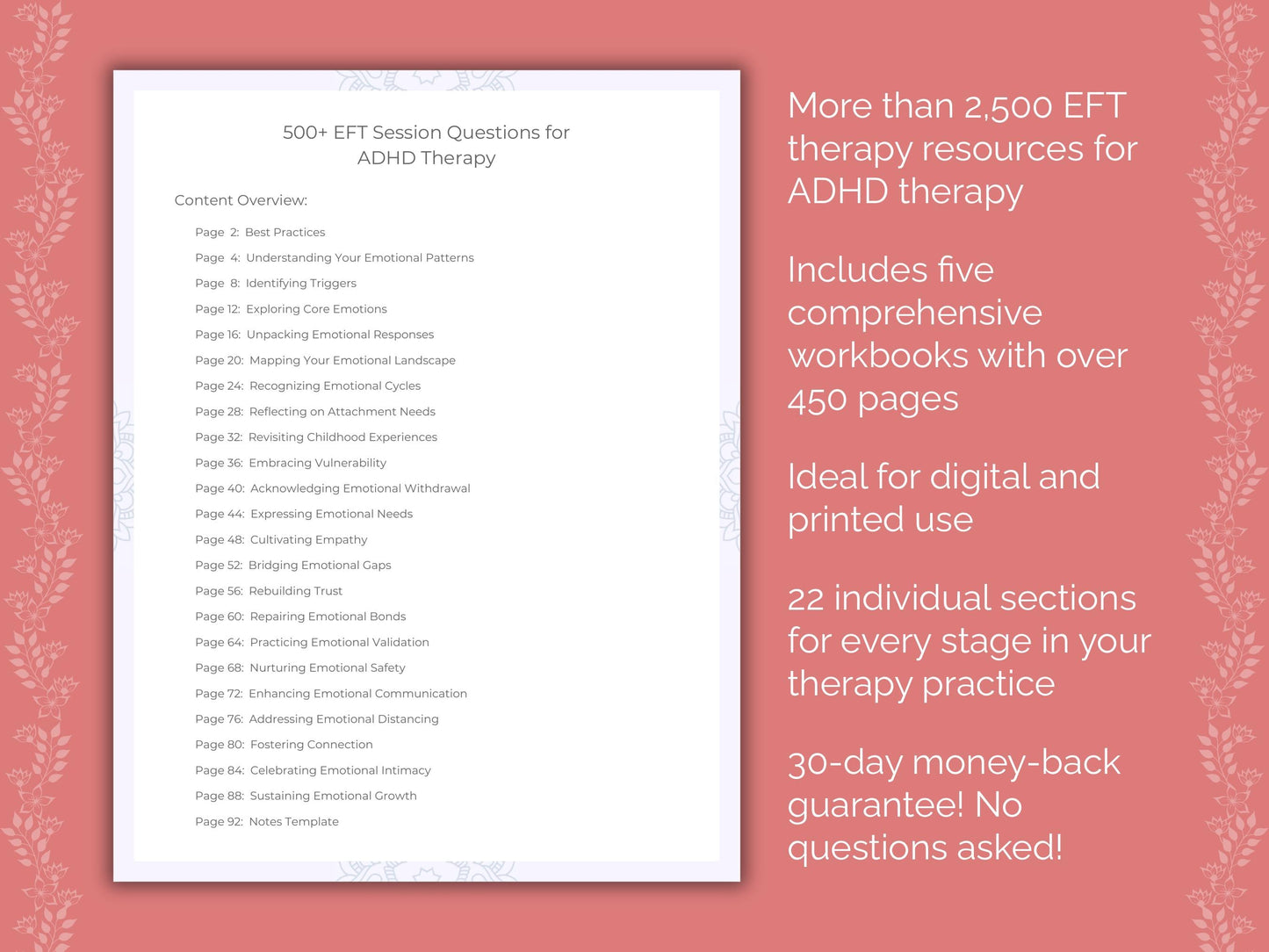 Introducing our ADHD EFT Therapy Resource Bundle, your essential toolkit for effective therapy sessions! Boasting a vast collection of over 2,500 therapy resources in 22 sections, this workbook bundle is meticulously designed to elevate your therapy practice. Unlock your full potential today and take your therapy sessions to the next level!