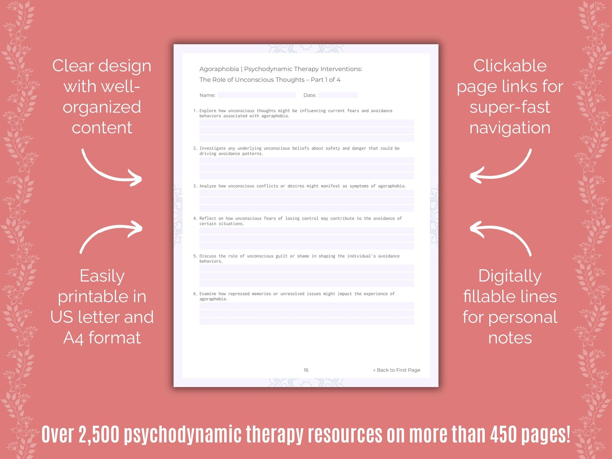This workbooks bundle for agoraphobia therapy covers over 2,500 unique psychodynamic therapy resources, including: