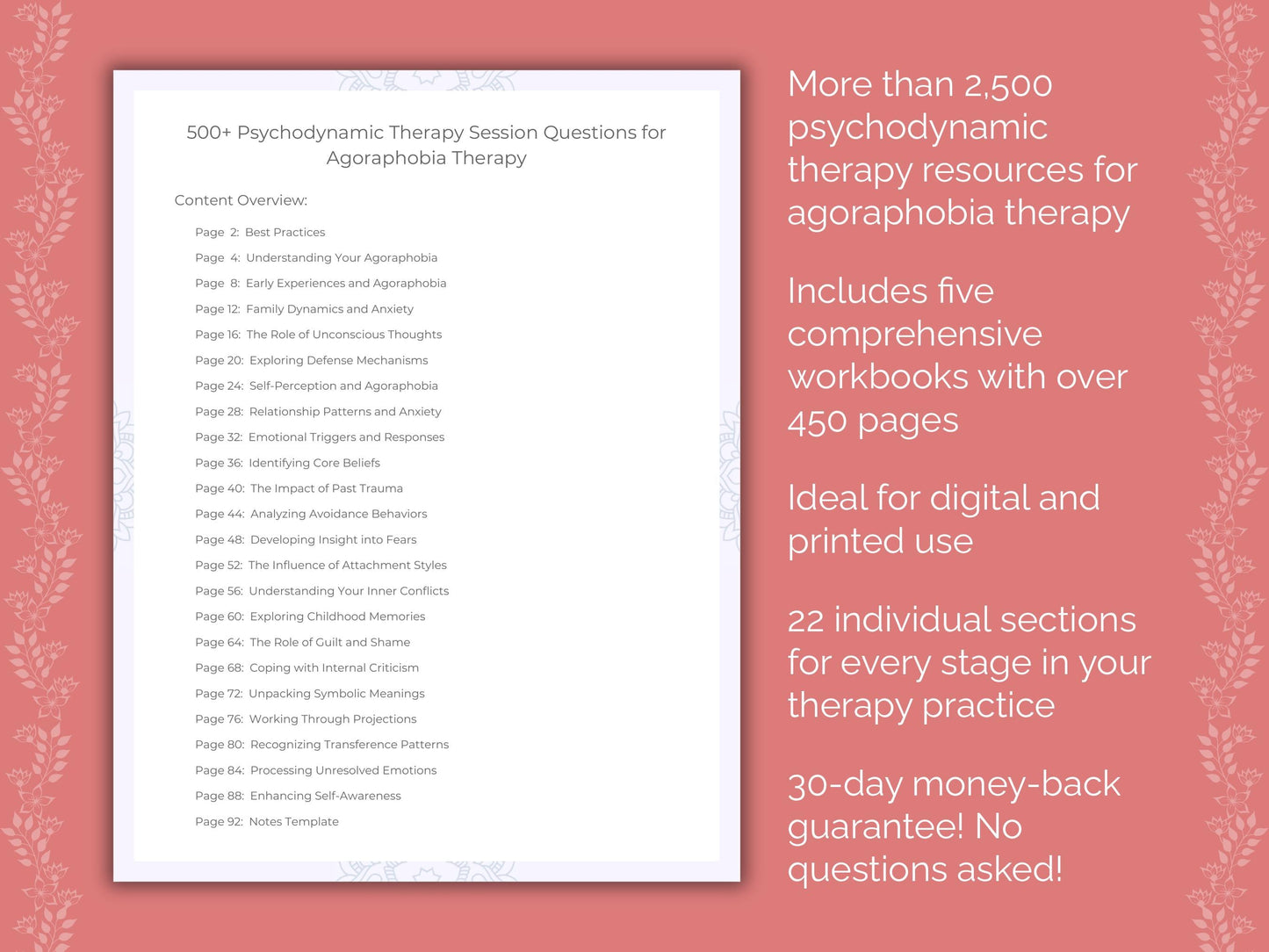 Introducing our Agoraphobia Psychodynamic Therapy Resource Bundle, your essential toolkit for effective therapy sessions! Boasting a vast collection of over 2,500 therapy resources in 22 sections, this workbook bundle is meticulously designed to elevate your therapy practice. Unlock your full potential today and take your therapy sessions to the next level!