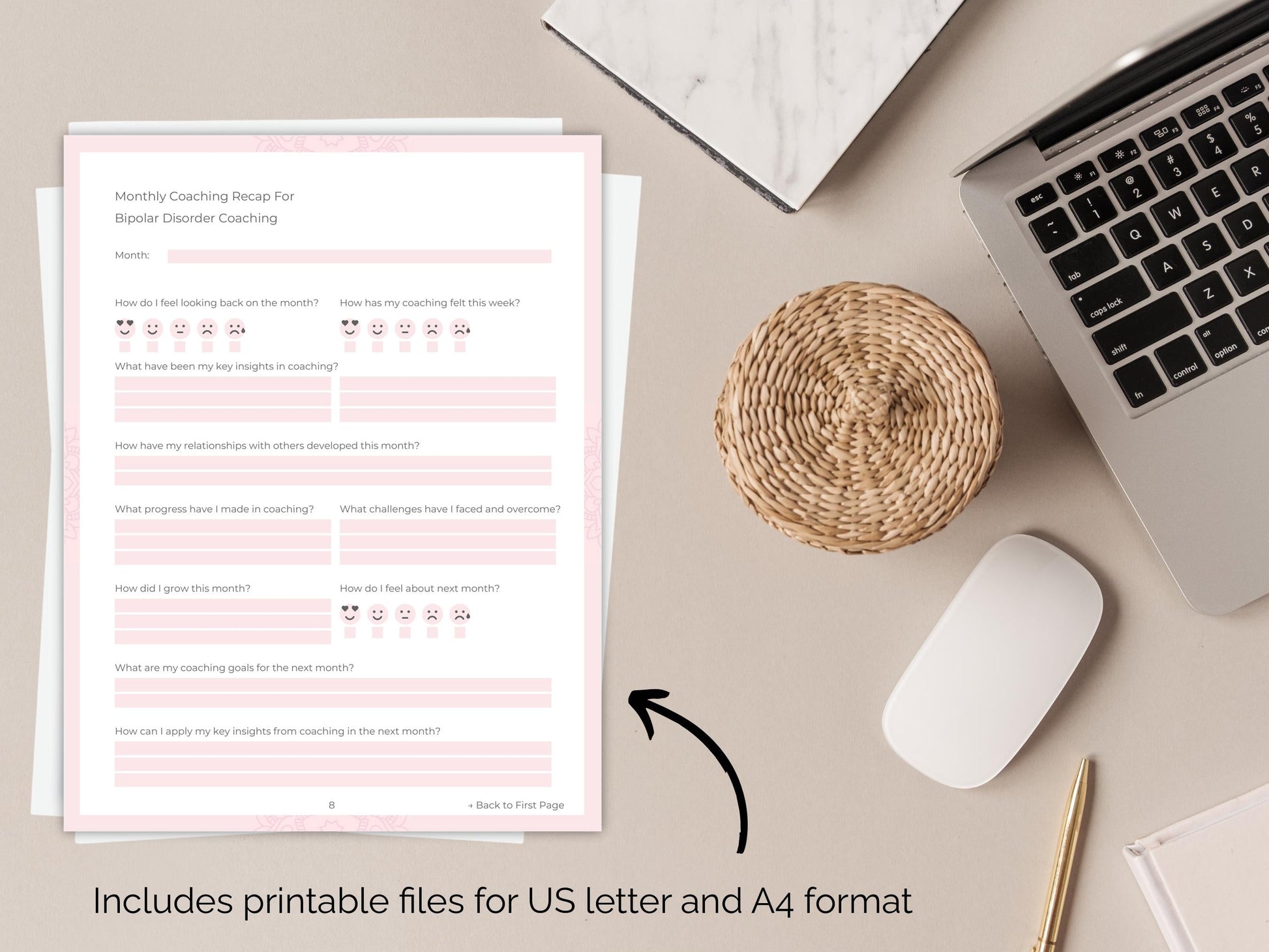 Absolutely! You're welcome to print our digital workbooks to have a physical copy. This way, you can take notes, highlight, and make them uniquely yours. All workbooks come in US letter and A4 format for a clear layout that is easy to fill out and visually appealing.
