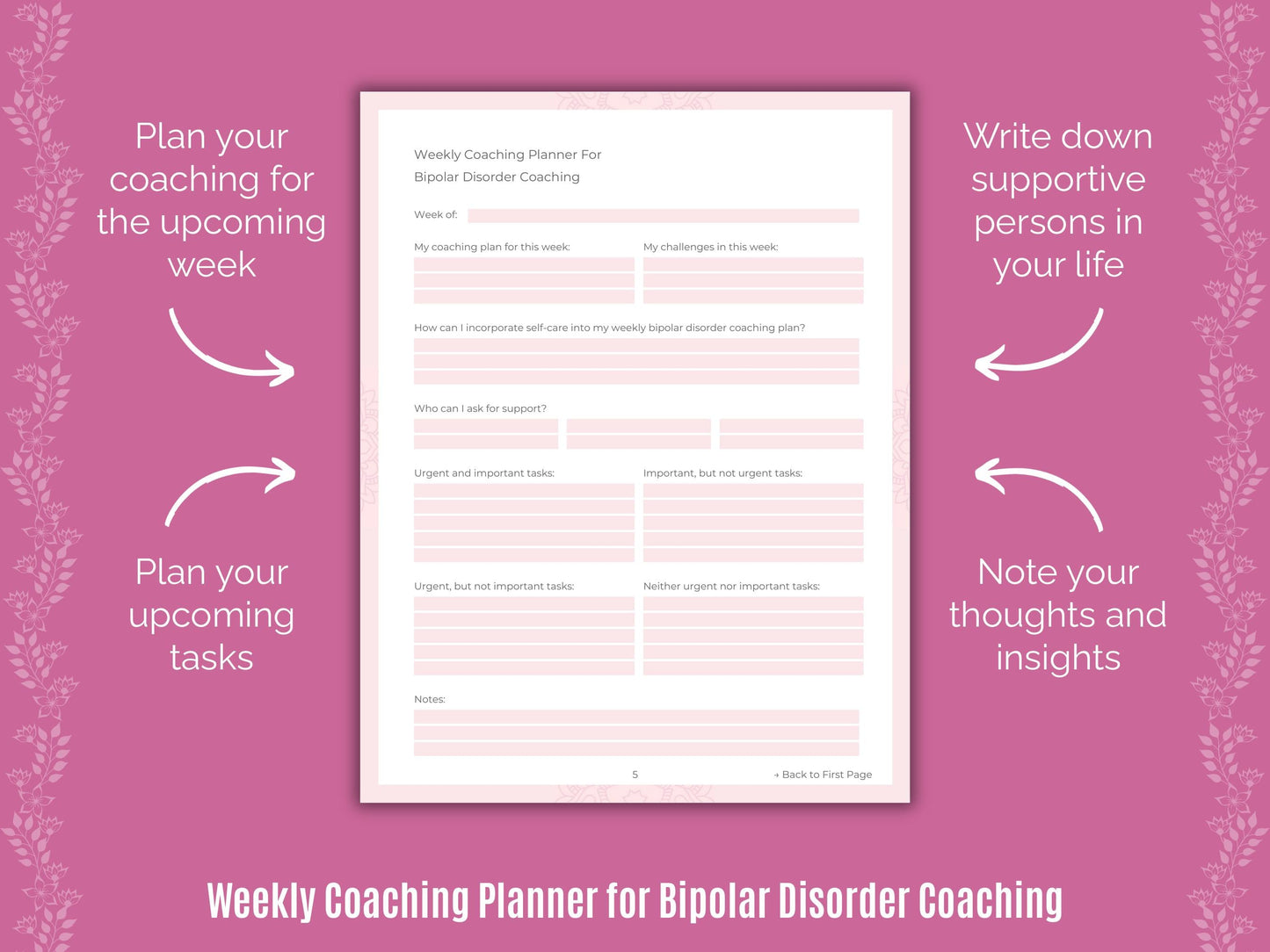 This worksheets bundle for coaching includes 40 workbook pages with unique coaching worksheets for Bipolar Disorder, including: