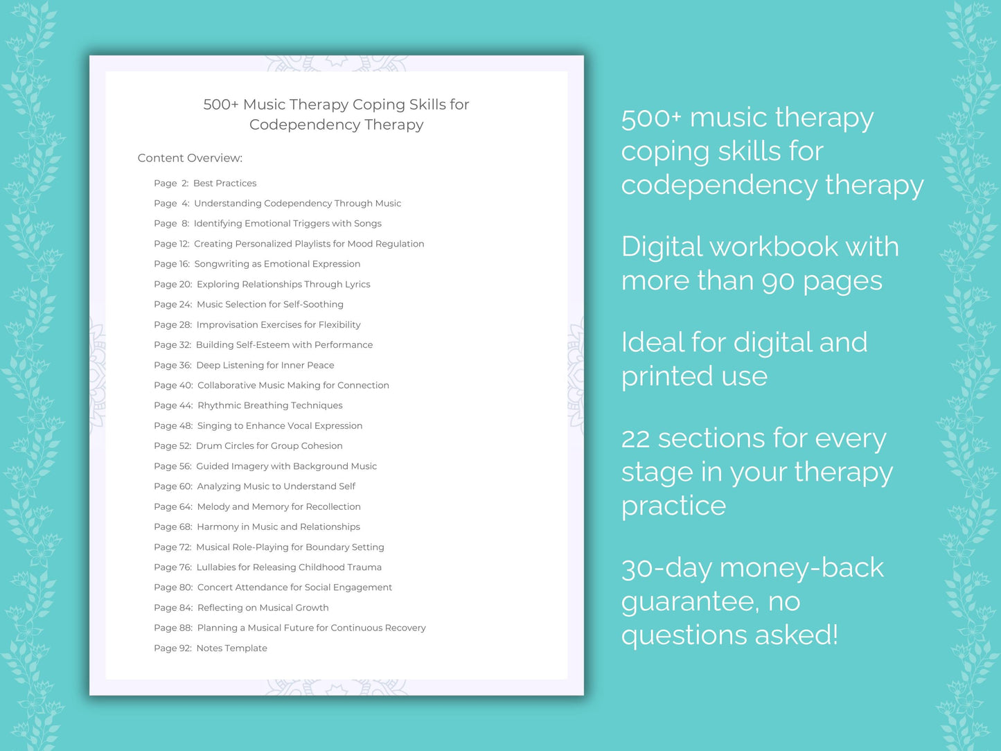 📚 Contains: One PDF workbook with over 500 music therapy coping skills for codependency therapy in 22 sections, instantly downloadable in US letter and A4 size.
