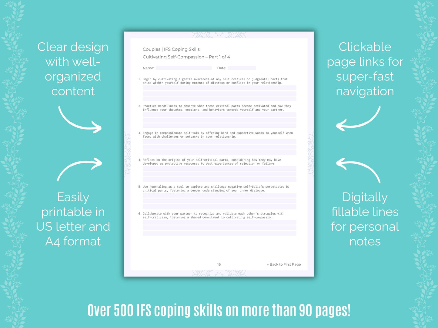 📚 Contains: One PDF workbook with over 500 internal family systems (IFS) coping skills for couples therapy in 22 sections, instantly downloadable in US letter and A4 size.