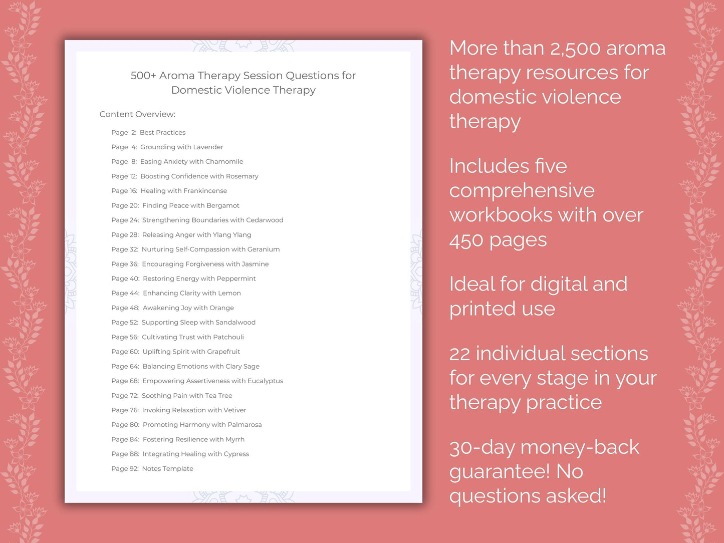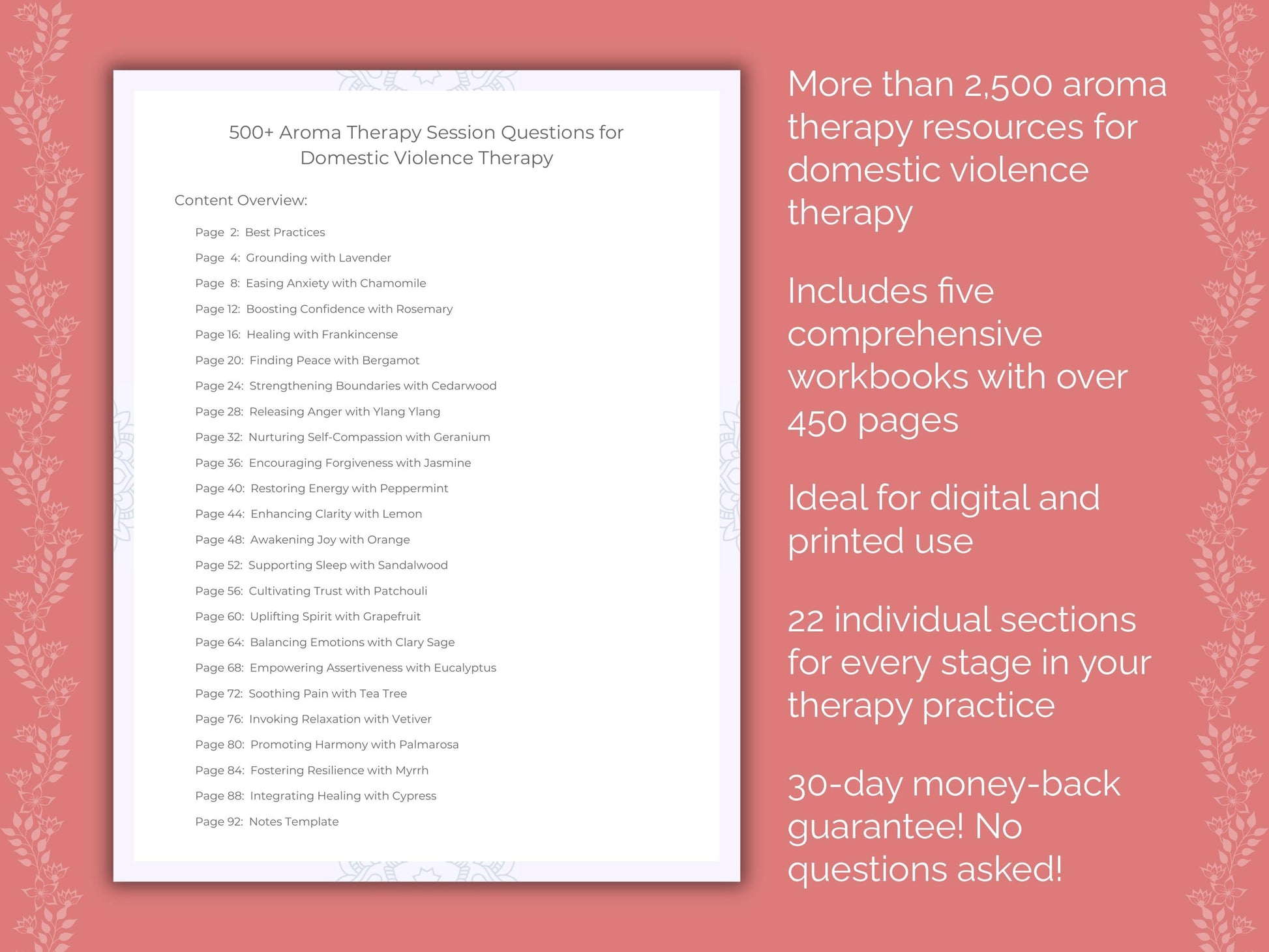This workbooks bundle for domestic violence therapy covers over 2,500 unique aroma therapy resources, including: