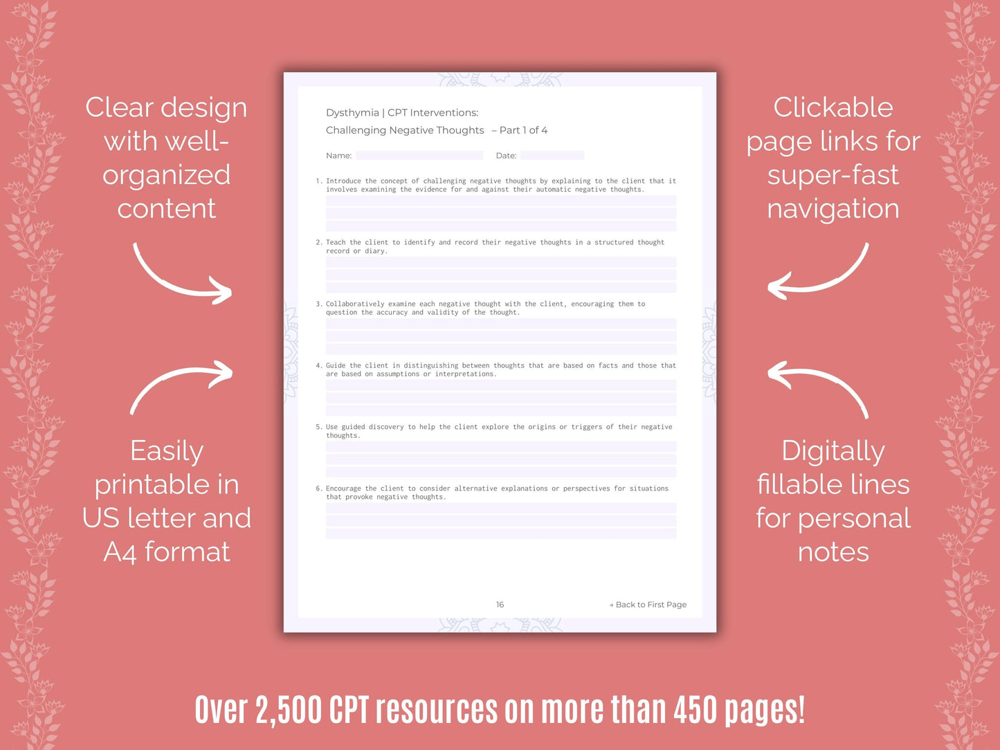 2,500+ Dysthymia Cognitive Processing Therapy (CPT) Resources | PDF Workbooks Bundle