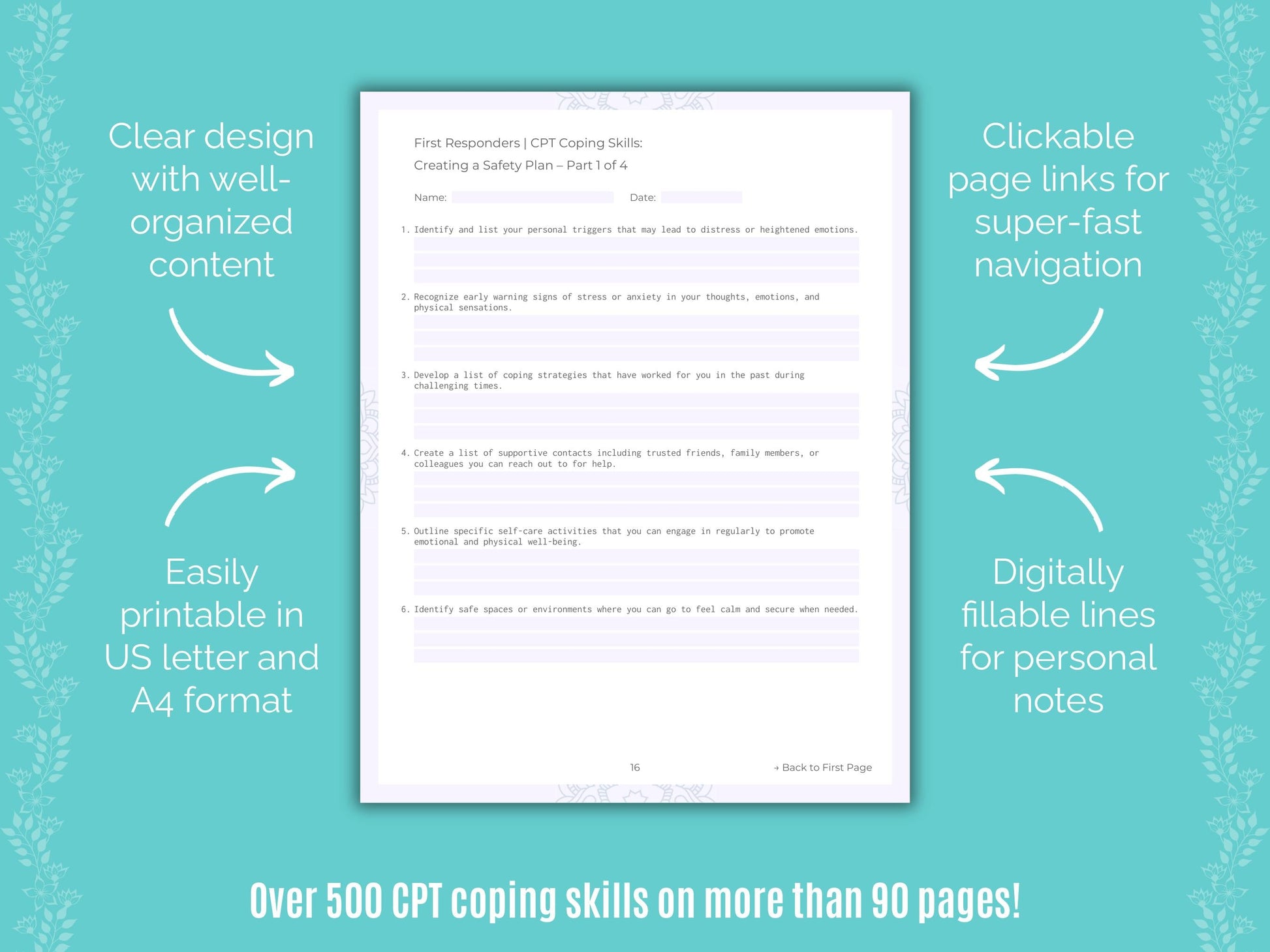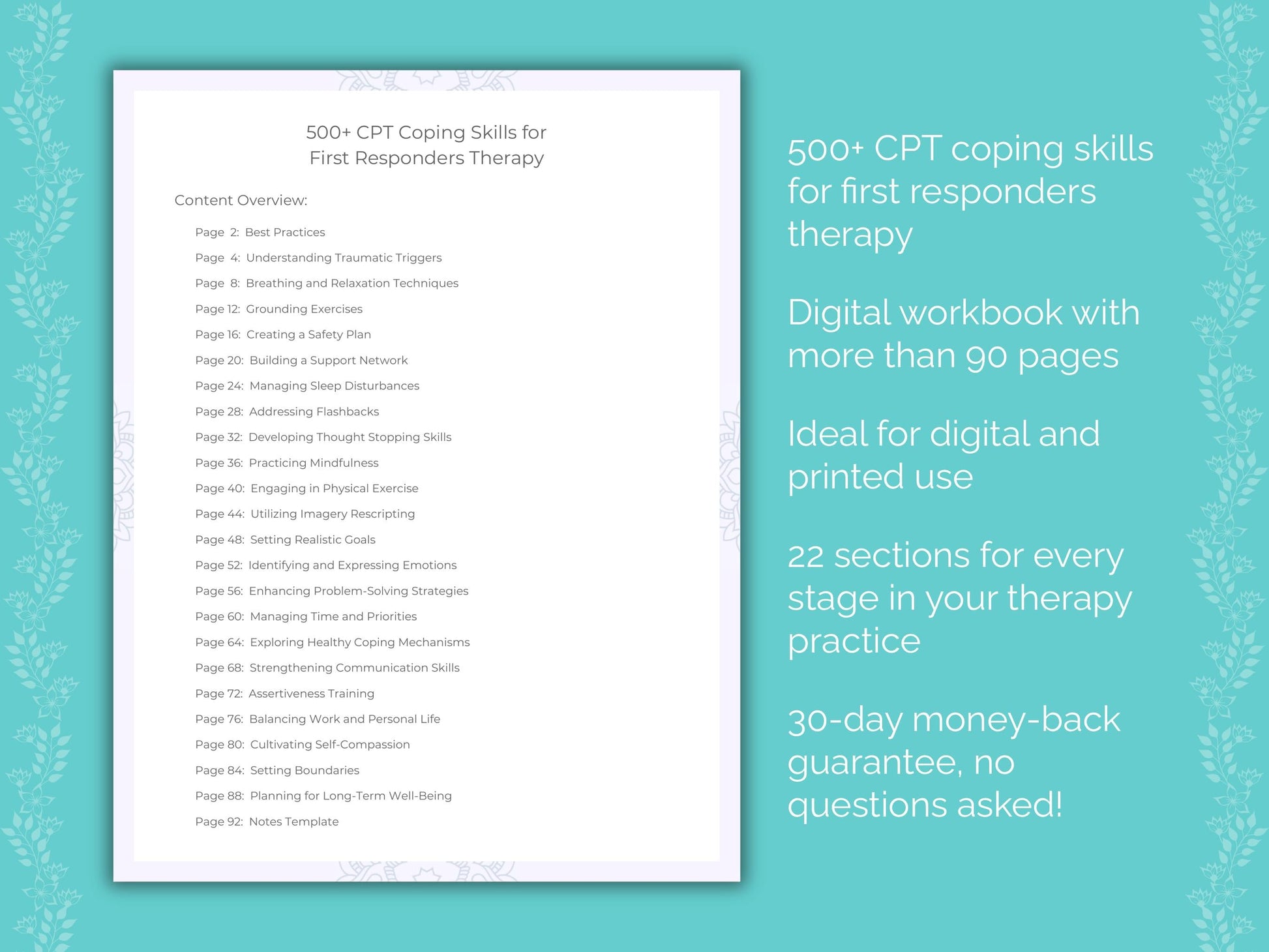 📚 Contains: One PDF workbook with over 500 cognitive processing therapy (CPT) coping skills for first responders therapy in 22 sections, instantly downloadable in US letter and A4 size.