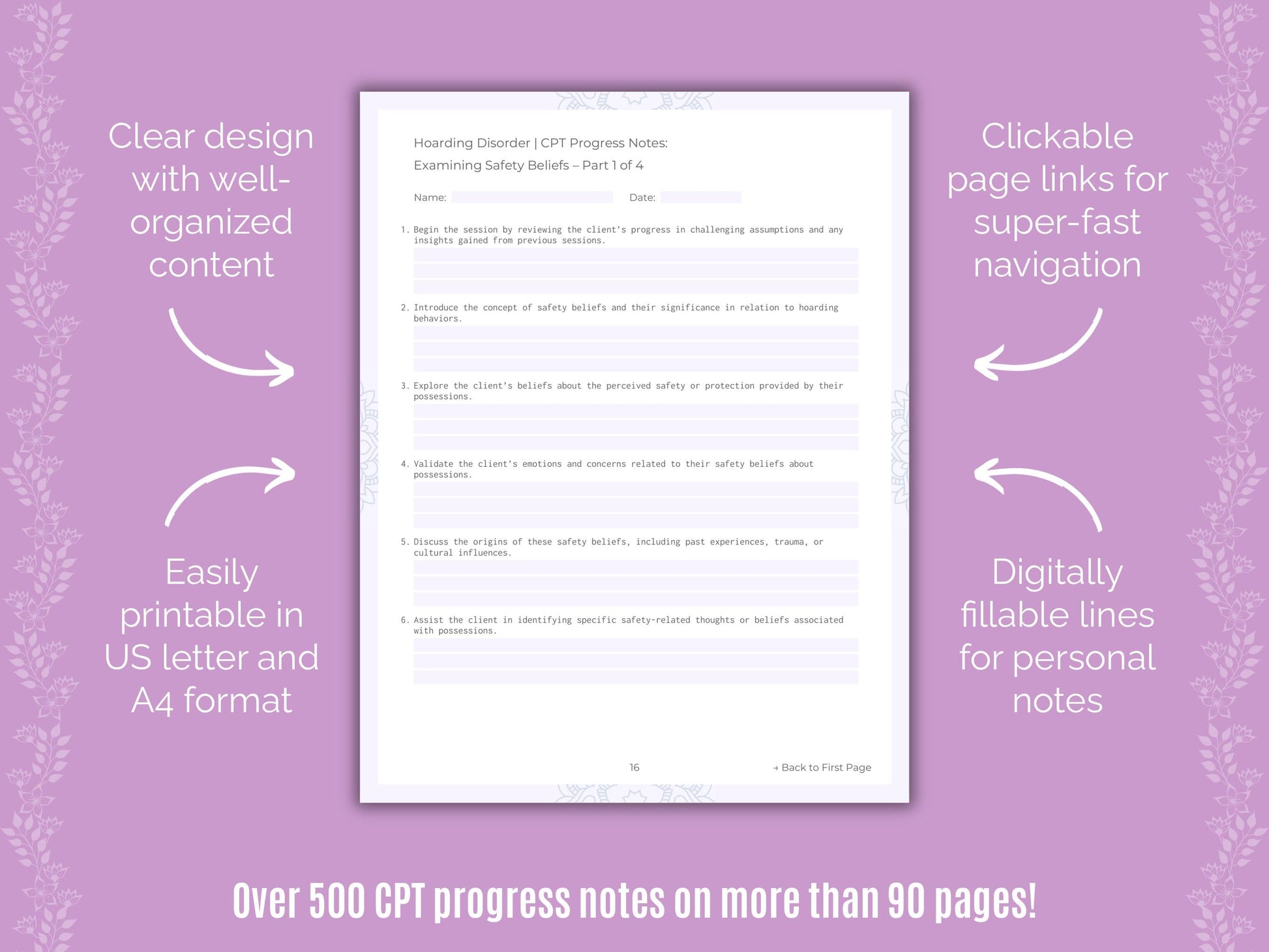📚 Contains: One PDF workbook with over 500 cognitive processing therapy (CPT) progress notes for hoarding disorder therapy in 22 sections, instantly downloadable in US letter and A4 size.