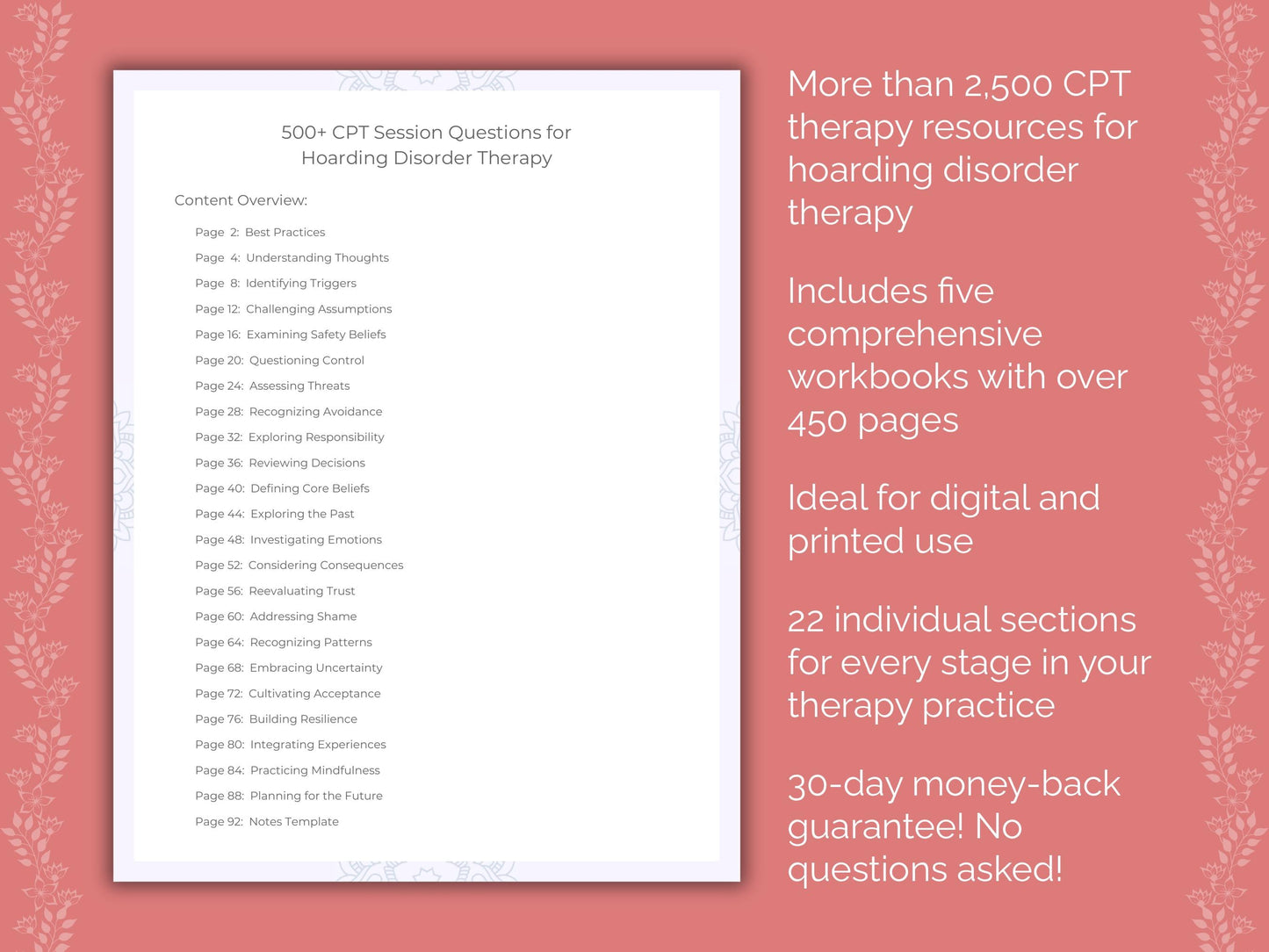 Introducing our Hoarding Disorder CPT Therapy Resource Bundle, your essential toolkit for effective therapy sessions! Boasting a vast collection of over 2,500 therapy resources in 22 sections, this workbook bundle is meticulously designed to elevate your therapy practice. Unlock your full potential today and take your therapy sessions to the next level!