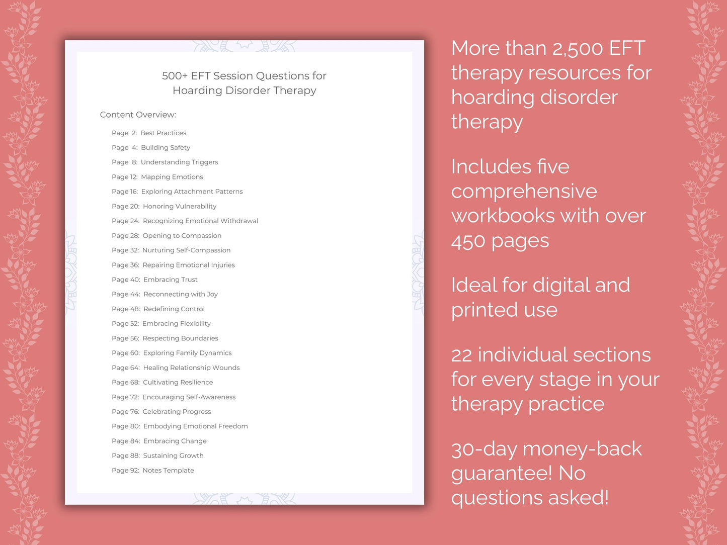 Introducing our Hoarding Disorder EFT Therapy Resource Bundle, your essential toolkit for effective therapy sessions! Boasting a vast collection of over 2,500 therapy resources in 22 sections, this workbook bundle is meticulously designed to elevate your therapy practice. Unlock your full potential today and take your therapy sessions to the next level!
