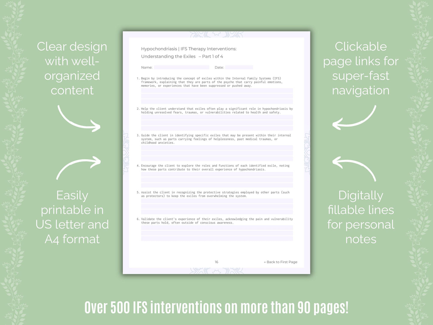 📚 Contains: One PDF workbook with over 500 internal family systems (IFS) therapy interventions for hypochondriasis therapy in 22 sections, instantly downloadable in US letter and A4 size.