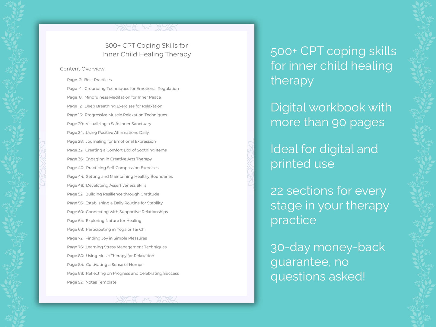 📚 Contains: One PDF workbook with over 500 cognitive processing therapy (CPT) coping skills for inner child healing therapy in 22 sections, instantly downloadable in US letter and A4 size.