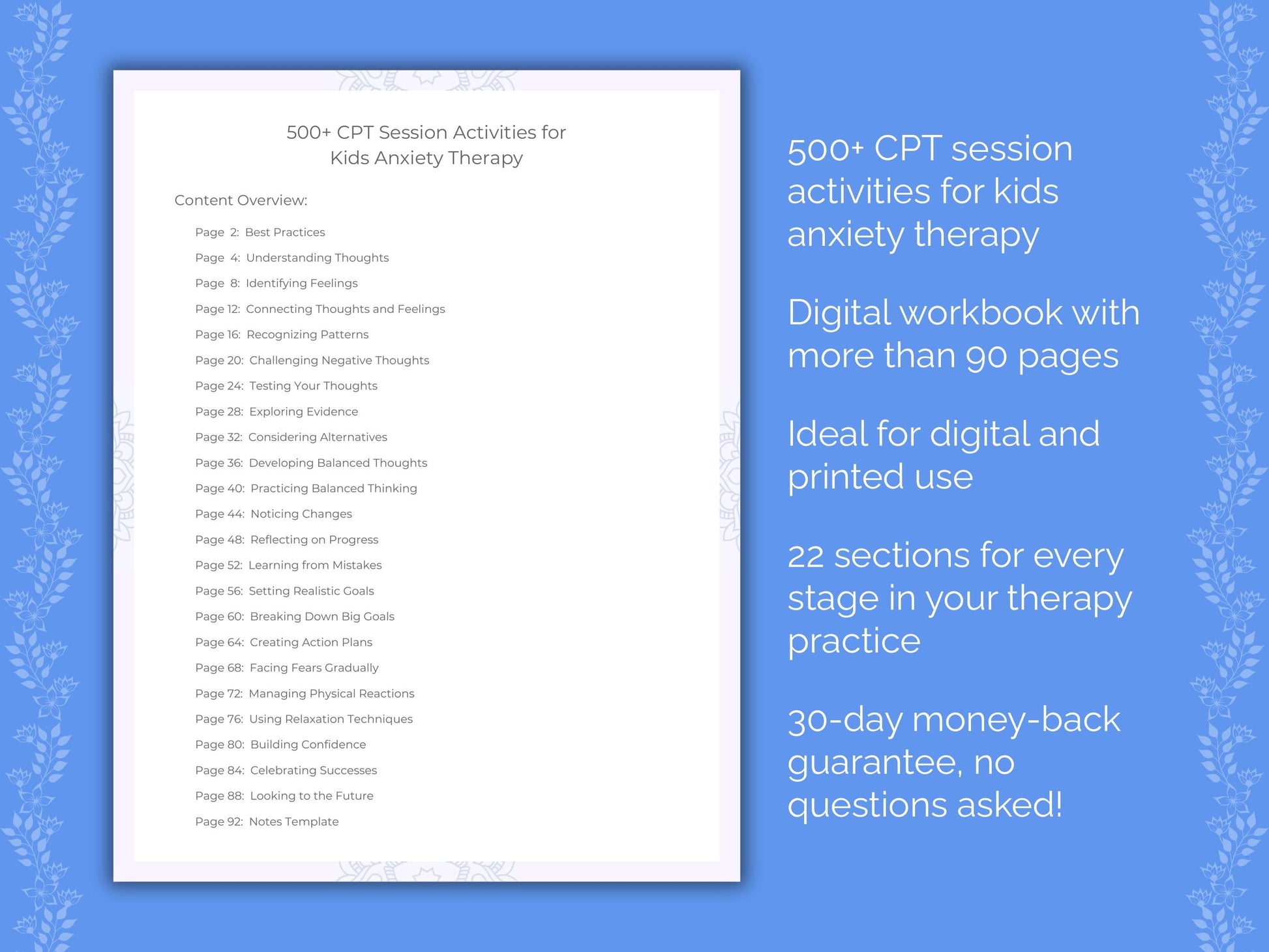 📚 Contains: One PDF workbook with over 500 cognitive processing therapy (CPT) session activities for kids anxiety therapy in 22 sections, instantly downloadable in US letter and A4 size.