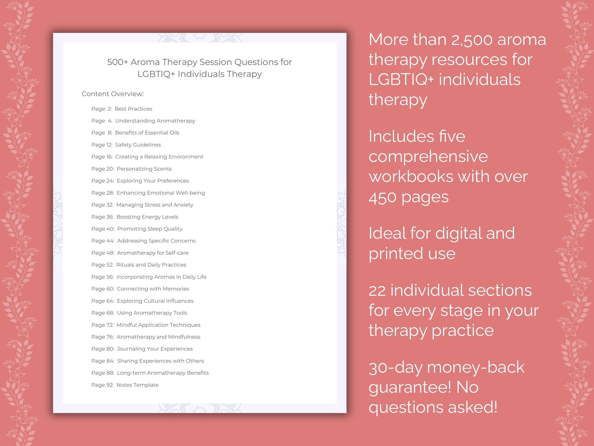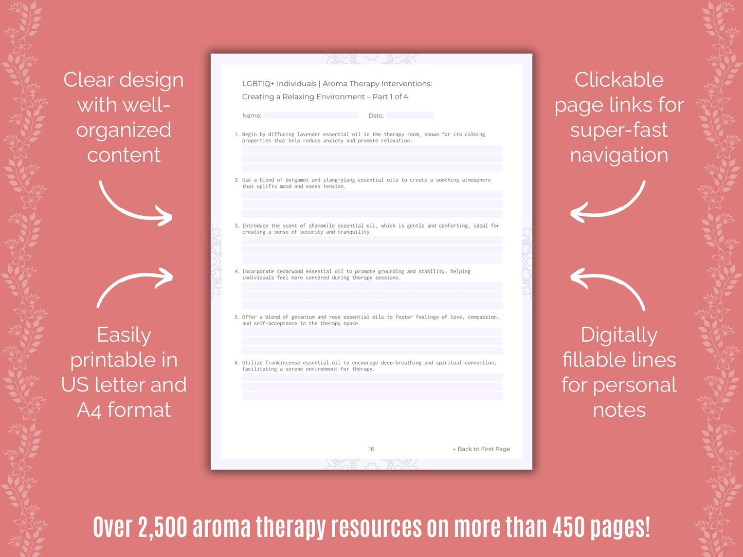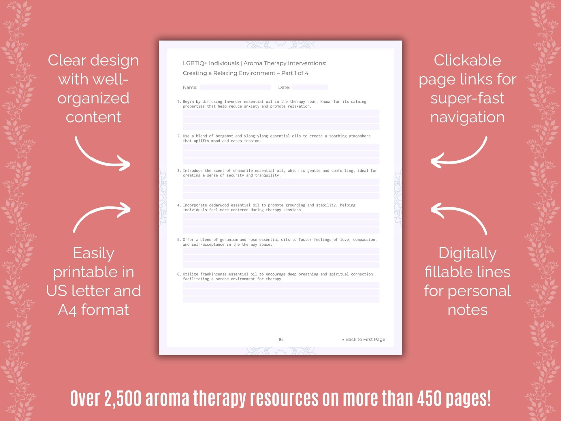 This workbooks bundle for lgbtiq+ individuals therapy covers over 2,500 unique aroma therapy resources, including:
