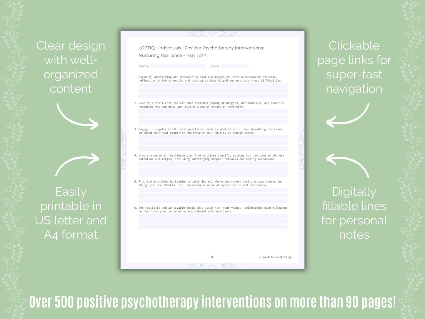 500+ LGBTIQ+ Individuals Positive Psychotherapy Interventions | PDF Workbook