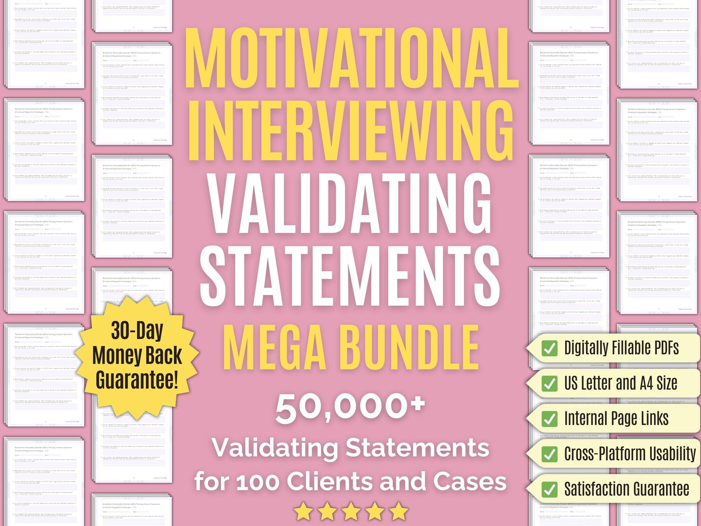 50,000+ Motivational Interviewing Therapy Validating Statements | PDF Workbooks Mega Bundle