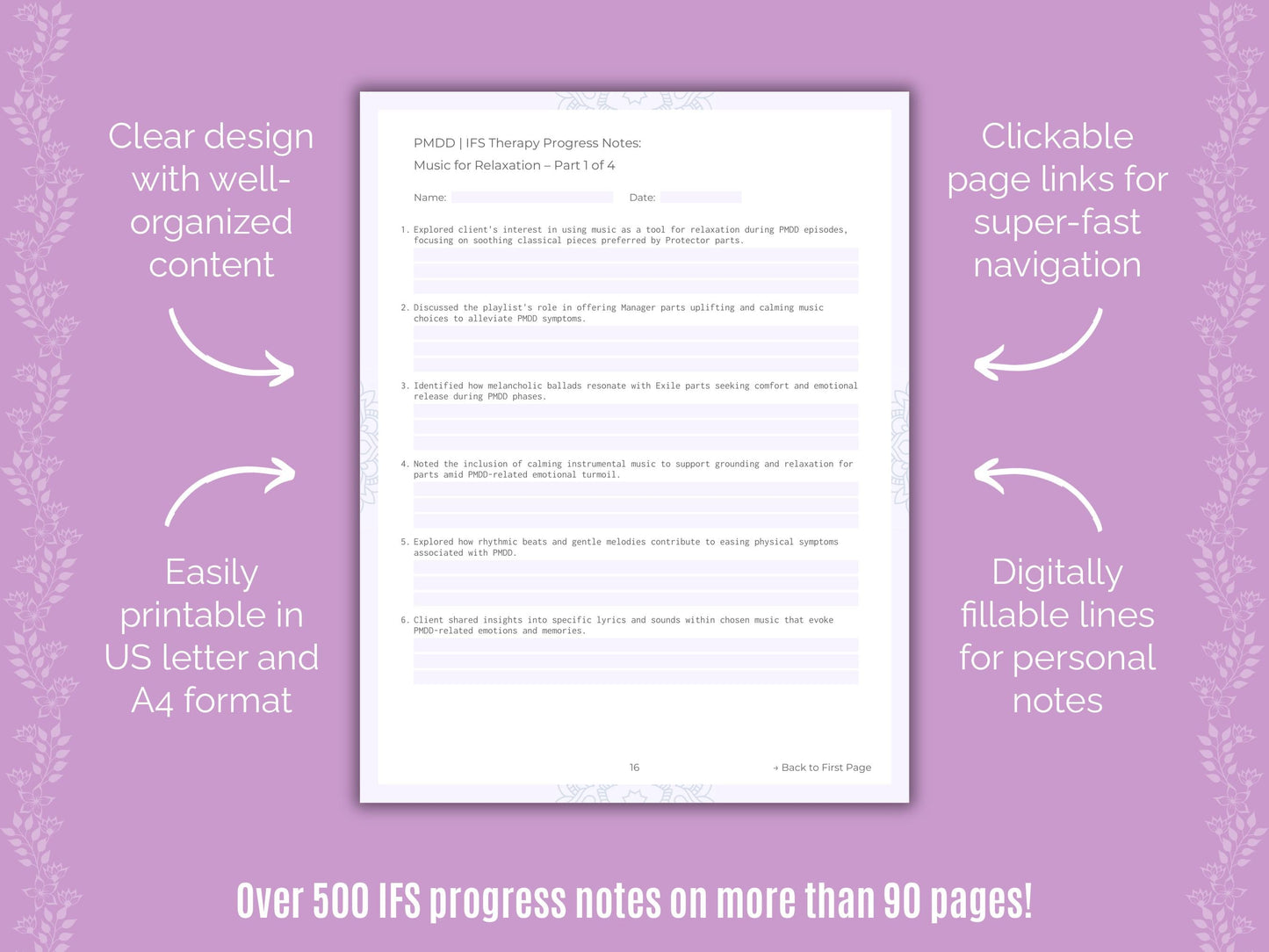 📚 Contains: One PDF workbook with over 500 internal family systems (IFS) therapy progress notes for premenstrual dysphoric disorder therapy in 22 sections, instantly downloadable in US letter and A4 size.