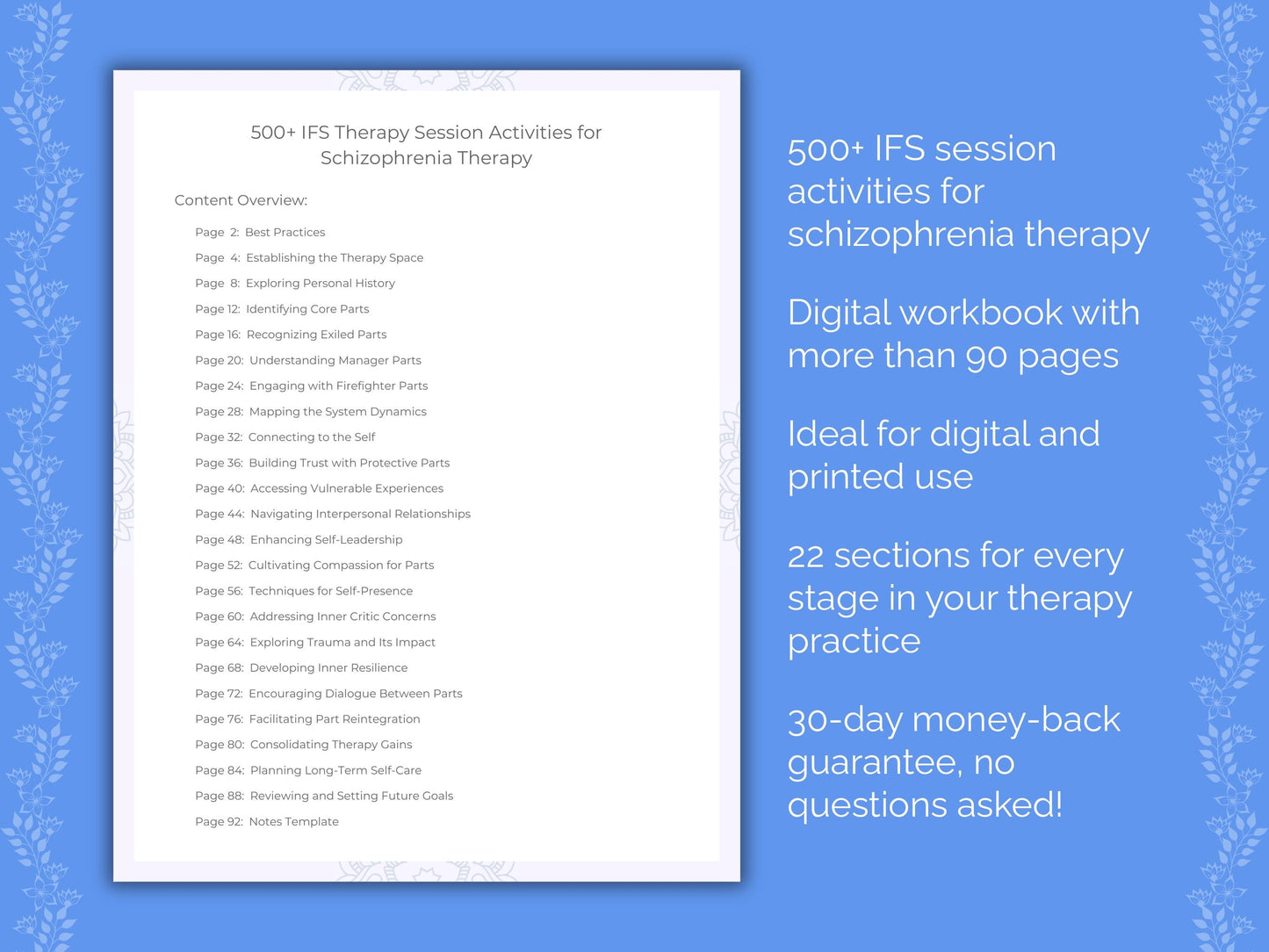 📚 Contains: One PDF workbook with over 500 internal family systems (IFS) therapy session activities for schizophrenia therapy in 22 sections, instantly downloadable in US letter and A4 size.