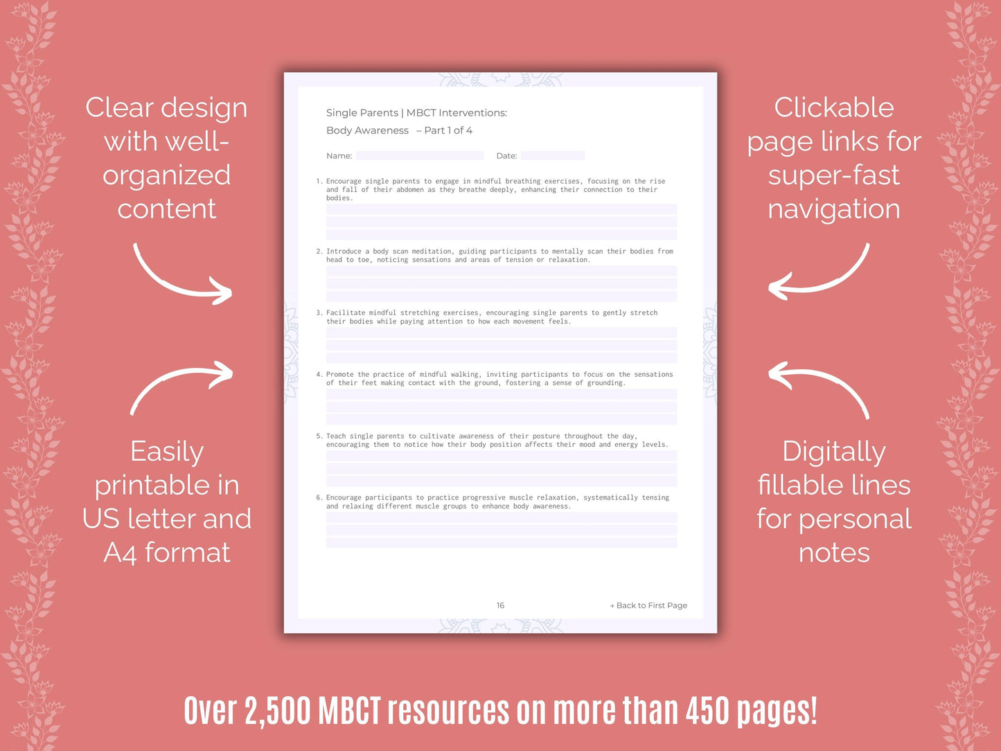 2,500+ Single Parents Mindfulness-Based Cognitive Therapy (MBCT) Resources | PDF Workbooks Bundle
