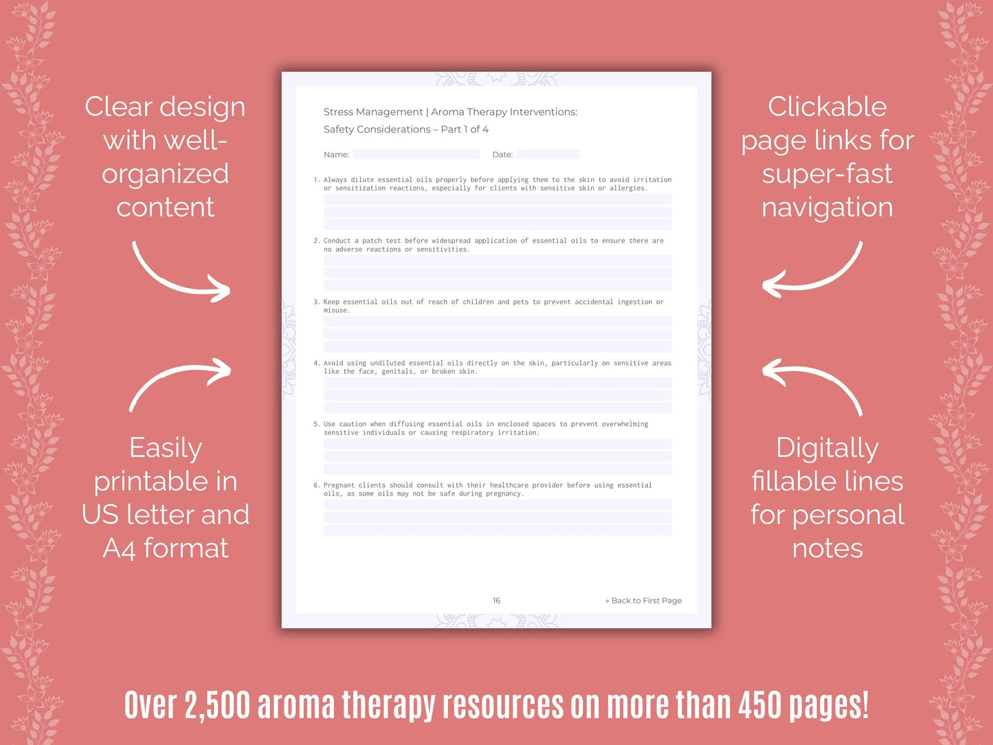 This workbooks bundle for stress management therapy covers over 2,500 unique aroma therapy resources, including: