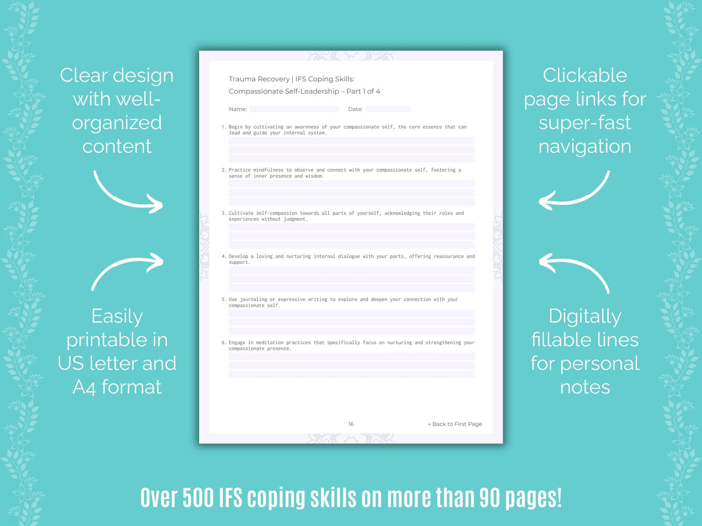 📚 Contains: One PDF workbook with over 500 internal family systems (IFS) coping skills for trauma recovery therapy in 22 sections, instantly downloadable in US letter and A4 size.