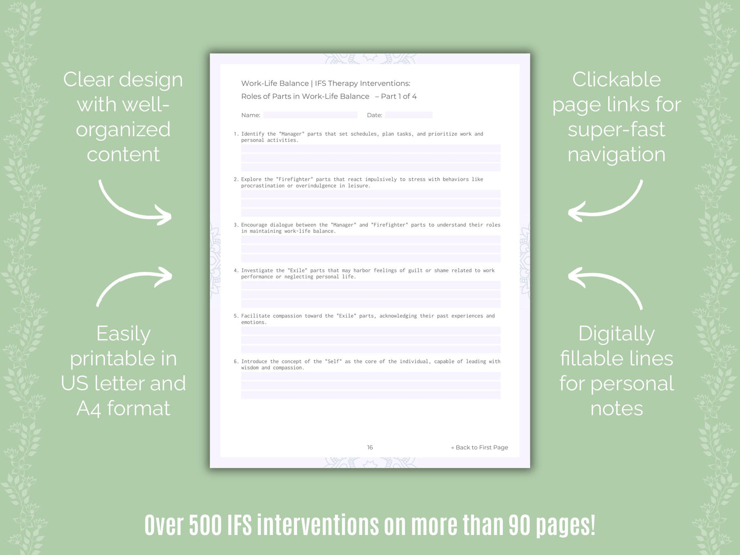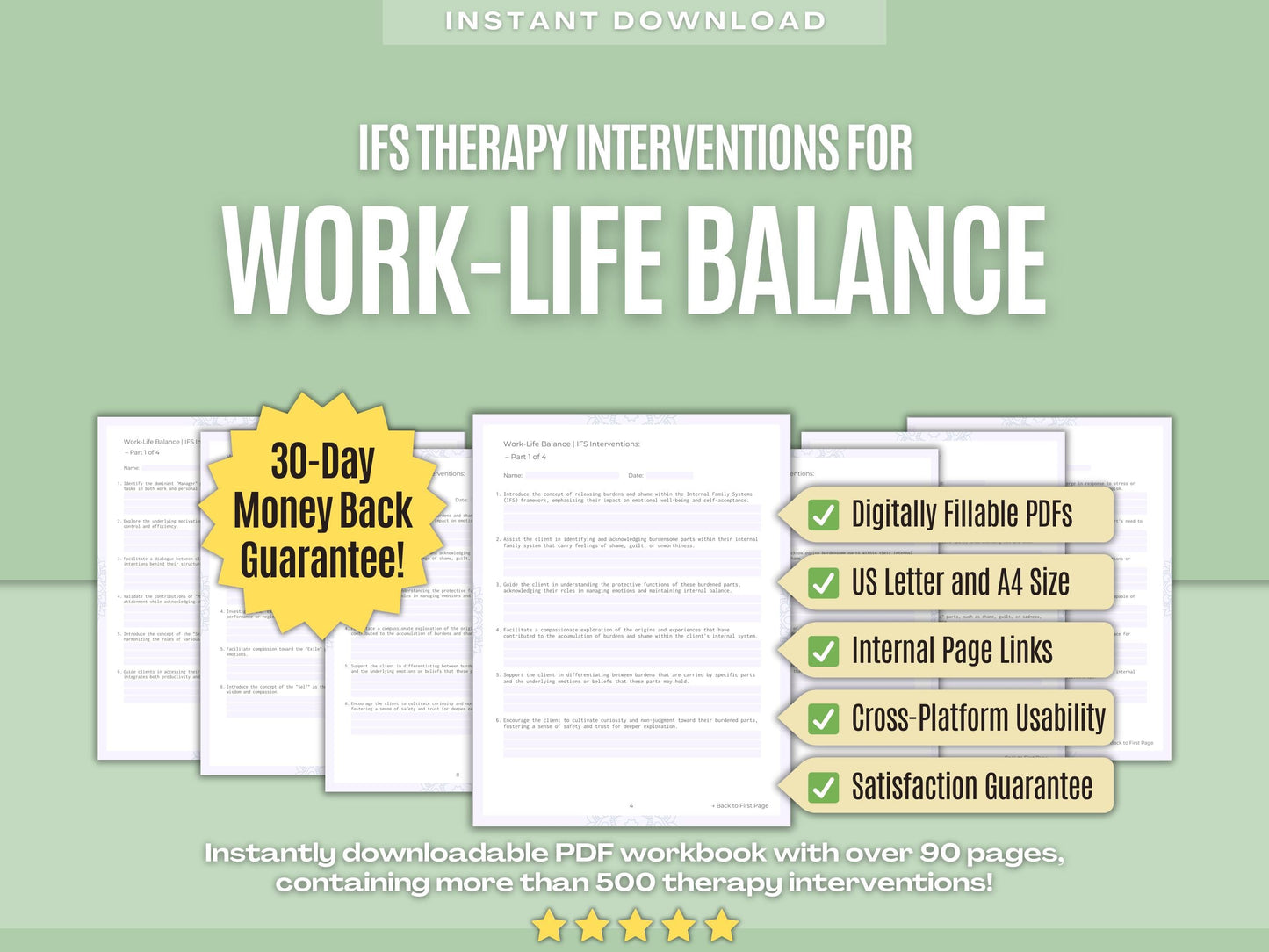 📚 Contains: One PDF workbook with over 500 internal family systems (IFS) therapy interventions for work-life balance therapy in 22 sections, instantly downloadable in US letter and A4 size.